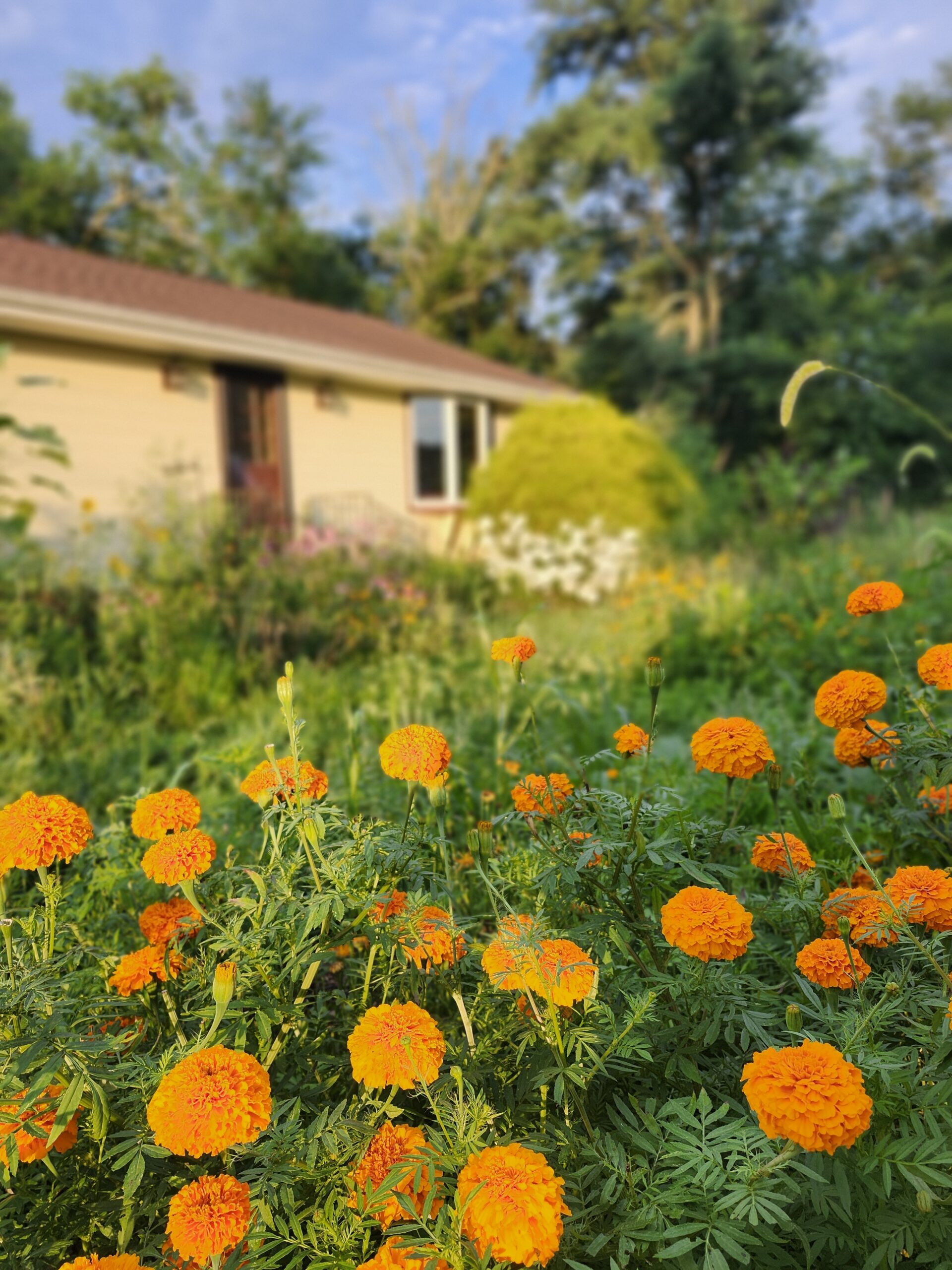 Full Sun. Plant 6in apart. Tall, African marigolds are great for cutting while also acting as a great companion to your veggie patch!