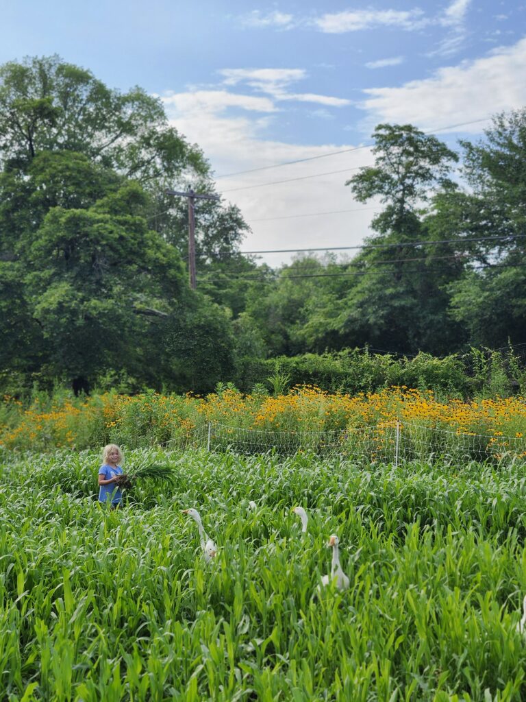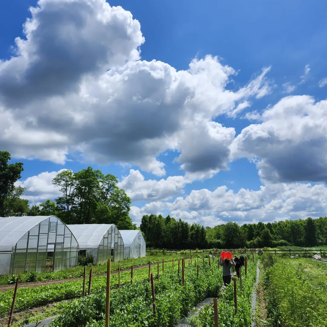 On this farm, we grow over 50 types of fruits and vegetables on just about 3 of our 8 acres. This means we have to steward the land responsibly and leave the soil better than the way we found it while also reducing inputs. We select all of our crop varieties carefully to maximize our small space and provide the best flavor. We also use methods such as precise succession planting, tunnels, and shade cloth to ensure we are providing reliable food throughout the season. In addition, we work to create a living system on the farm that encourages biodiversity at every level. This is achieved through pollinator plantings, living mulches, and our 2 acres of woodlands.